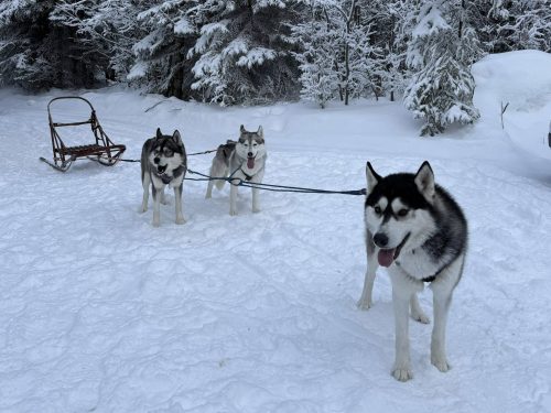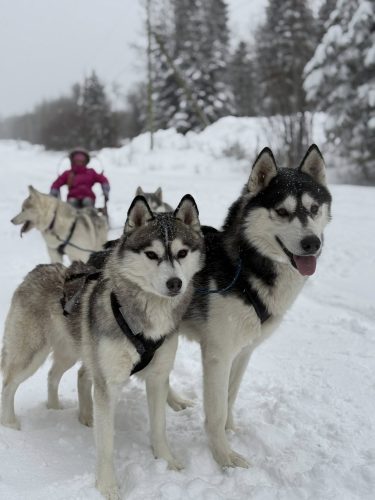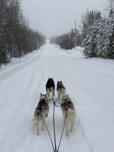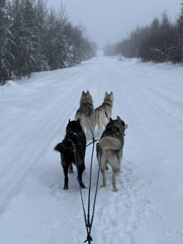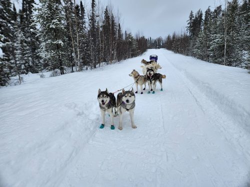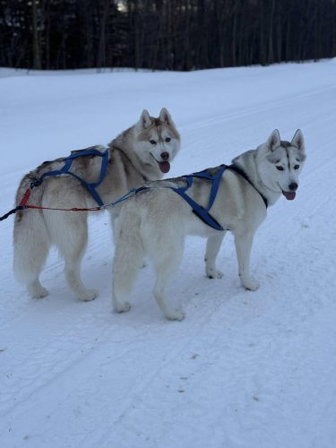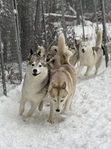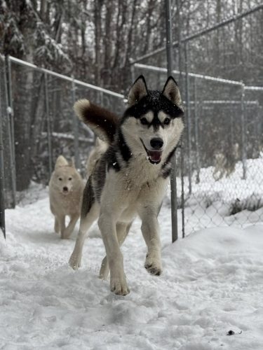 January 2022: Happy New Year!! We started off the year with temperatures that had us all staying inside all day and night! It was around -40 and even colder for about 2 weeks straight. The dogs stayed busy with mind games and new tricks. We were lucky to be able to take a couple teams of 2 out before the cold snap hit though. Very happy it is warming up as we will be able to take the dogs out sledding much more!! We had a huge drop of snow and the dogs are loving it!!