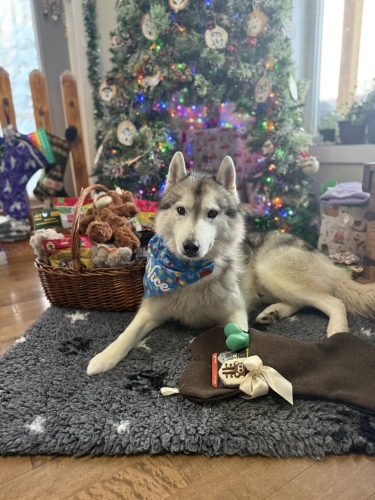 December 2025: We had a great December running sled teams and spending time with the dogs. Moto Moto achieved his Novice Trick titles (Canadian & American) and his 2-K9 Ruff Run title. On December 19, 2025 we welcomed our final litter of the year! Kindle & Moto are the proud parents are 7 beautiful babies (5 boys & 2 girls) and we have chosen a ‘Dazzle’ theme!! Boys are: Razzle, Dazzle, Glow, Shine & Flash and the girls are Shimmer & Glimmer. We currently have 2 male puppies available to approved homes, they will be ready to go after 9 weeks of age (Feb 20). The dogs all enjoyed opening their stockings on Christmas Day, it is always such a joyful and fun time to share with our doggos <3