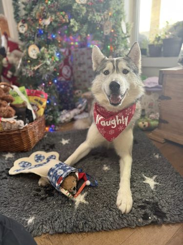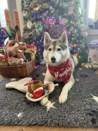 December 2024: December came in with great news as Blackmail’s OFA hip results came back and he was rated OFA ‘Excellent’!! This is always the best news as Excellent is the BEST score you can get!! We had fun taking some fun Christmas photos of Onyx, Kindle, Iceka & Faelan and hung the dog stockings. Do you think the dogs were good enough for Santa to come this year? I think yes! Well.. maybe aside from Blackmail who is our Houdini escape artist.. hehe. On December 10, 2024 all 3 of our Kaniska dogs earned their 2-K9 Ruff Run title. This is Rooster’s 3rd title and a first title for both Fen & Rhea!! On December 17, 2024 Fen & Rhea took it up a notch earning their TKN (American Novice Trick Dog) titles.. such good dogs!!! Rhea one upped her brother by earning her Novice Trick Dog (Canadian version) title before him, on Dec 18. But two days later on Dec 20 Mr Fen earned his NTD title as well <3 We are wishing everyone a Merry Christmas and a Happy New Year!