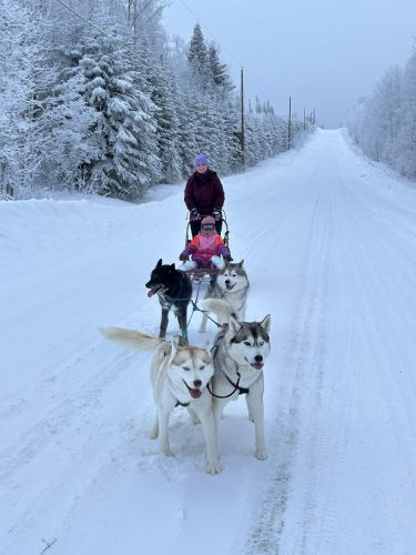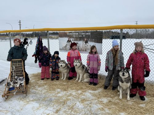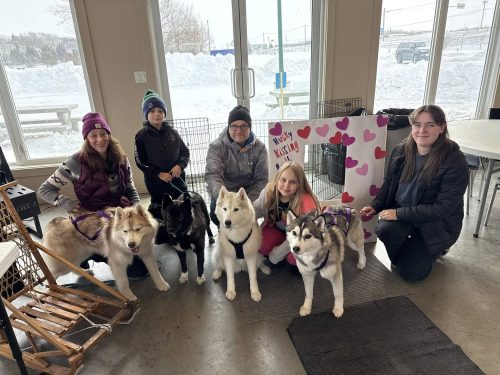February 2023: One of our favourite months each year as we get to participate in our local winter festival ‘High On Ice’. This year on February 19, 2023 we had over 100 people come out to our house to meet the dogs, learn about the breed, learn about dog sledding, the history and the equipment used and get many husky snuggles! The dogs love when people visit and were screaming with excitement when they saw the first group arrive! Our newest family member ‘Alice’ & her brother ‘Eddy’ (who is owned by our friend in the Yukon) were also a big hit and had a great day of socialization! It is an amazing feeling to be able to share this beloved breed with the community! Huge thank you to NPSCU & City of Fort St John for sponsoring our event and a huge thank you to all our volunteers who helped make the day amazing for everyone!