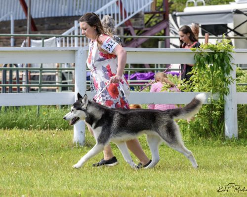 Achievements: Jon Snow had fun playing in the ring as a Baby Puppy between 4 – 5.5 months old and he picked up multiple Best Baby in Breeds and a Best Baby Puppy in Sweepstakes!! August 8, 2024 (the day he turned 6 months) Jon achieved his first title: 2-K9 Ruff Run alongside his grandpa Blackmail!! September 2024, Jon was awarded his Novice Trick Dog title! October 2024 we had fun getting Jon’s Equinox Explorer 5km title on him. Spring 2025 he was awarded his ITD (Intermediate Trick Dog) title. He came back out to play in show rings June 2025 where he was awarded x2 Winners Male & Best of Winners for his first 4 Championship points!! We finished off the summer by earning his Novice Trick Dog Masters title in August 2025. I am so looking forward to this young boys future!