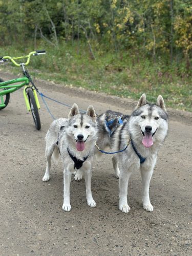 Achievements: Kindle earned her Novice Trick dog title in 2020 and her 2-K9 Ruff run title in 2021, alongside her brother Axel! Kindle was entered into her first show for one day the end of June 2022 where she was awarded 2x First in Class, 2x Winners Female, 2x Best of Winners and 1x Best of Opposite (over specials) for 5 points towards her Championship her first time in the ring! Kindle entered the rings for the second time July 2022 and picked up 3 Best of Winners & 3 Best Of Opposite to finish her Canadian Championship in less than 2 show weekends, undefeated in the classes!! She picked up her first 2 Grand Champion points her first time in the ring as a specials as well! Kindle and her best bud Iv were shown at our local show May 2023 and were awarded all 3 Best Brace in Shows!! Kindle was also shown by Aliyah in the juniors ring and had a great time! Summer 2023 Kindle completed her first round of beginner agility and had a great time. Nov 2023 Kindle earned her Triple Threat title!! We are so incredibly proud of her! Kindle loves running on the sled team and excels at any position including lead! We love this sweet angel!